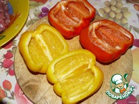 Сладкие болгарские перцы разрезаем на две половинки и очищаем от семени. |