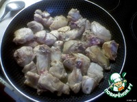 Курочку помыть, обсушить и нарезать вместе с костями на средние кусочки. |