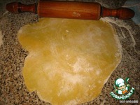 Замешиваем тесто (2 яйца, вода, 1/2 ч. л. соли и мука) раскатываем |