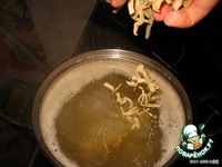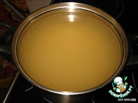 Варим крутой бульон, после закипания кладем в него морковь, лук, чеснок, перец горошком... и варим часа 1,5-2 |