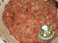 говядину обмыть, порезать на куски и перемолоть на мясорубке вместе с луком, смешать полученный фарш с яйцами, майонезом, измельченным базиликом, солью, перцем и крахмалом |