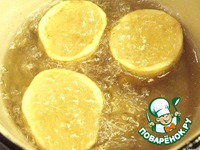 Наливаем в кастрюлю подсолнечное масло, доводим до кипения и опускаем в масло картофель. Варим 10-15 минут. |