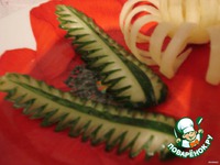 Делаем заготовки для листьев, обрезая огурец с двух сторон. |