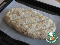 Противень застелить бумагой, выложить тесто, придав ему овальную форму. Ножом сделать на поверхности надрезы. Выпекать при 180*С 35 минут. |