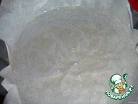 Форму покрыть пекарской бумагой, и выложить туда1/3 часть начинки (мы будем печь три коржа) |