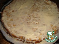 Сверху выкладываем третий корж, тоже обмазаного с двух сторон (это для клейкости) |
