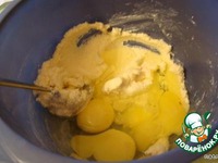 Размягченное масло или маргарин (не растопленное) растереть с сахаром, добавить яйца и перемешать |