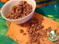 Шоколад порубить ножом на кусочки примерно по полсантиметра толщиной |