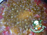 вливаем бульон, чтобы покрыл рис, даем закипеть |
