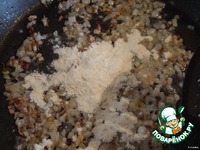 В него я положила соль и муку и все хорошо перемешала и немного пожарила, периодически помешивая. |