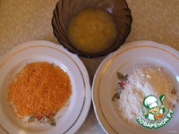 Берем две тарелки и одну миску. В тарелки насыпаем муку и панировочные сухари, а в миску яйцо и соль и немного взбалтываем. |