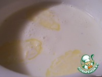 Дальше берём тёртый сыр, заливаем сливками, кладём масло, и где-то 1 стакан кипятка.