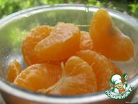 Для соуса: Очистить мандарины, один отложить в салат, блендировать и протереть через сито (ячейки не очень мелкие). |