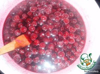 Вишни отделяем от косточки, а из сахара и воды делаем сироп (доводим до кипения, помешивая. Можно проварить его пару минут, чтоб сахар растворился.) |