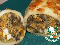 Помыть шампиньоны. Нарезать их. Жарить на слабом огне примерно 5 минут. |