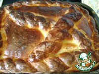 Затем половину раскатываем и кладём на противень, сверху выкладываем начинку, затем опять раскатанное тесто. |