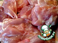 Обрезаем с окорочков мясо. У меня с двух окорочков получилось около 400 г. |