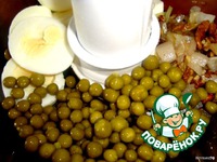 В миксер выкладываем отварные яйца, лук, орехи, зеленый горошек. Добавляем соль, перец и вино. Взбиваем несколько минут до однородной пышной массы. |