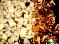 Лук порезать и обжарить вместе с орехами до готовности. |