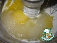 Добела растираем желтки с сахаром и лимонной цедрой. |