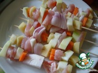 Далее - дело техники. Шашлычки надо выложить на блюдо с бумажным полотенцем или салфетками, чтобы впитался лишний жир. Красиво режем овощи и фрукты, наливаем напитки - |