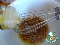 Готовим заправку. Берем винный уксус (у меня бальзамический), горчицу и сахар, взбиваем немного в однородную массу, чтобы сахар растворился. Продолжая взбивать, добавляем понемногу оливковое масло |