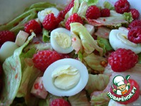 Описание: Насмотрелась я на сайте всяких вкусненьких салатиков с клубникой... Впечатлилась и решила тоже что-нибудь изобразить. Но... клубника у нас уже прошла((( Зато малина в самом разгаре!!! Я не успокоилась, полезла в свои журнальчики и нашла в "Школе гастронома" вот такой вот летний салатик! Ну очень пикантный да и просто необычный! Прошу!