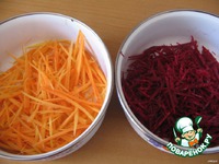 Теперь займемся овощами. Свеклу и морковь моем, чистим и натераем на крупной терке, как для моркови по-корейски. |
