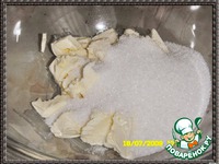 Взбить миксером размягченное сливочное масло с 1 стаканом сахарного песка. |