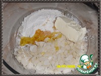 1 ч.л меда и 50 гр. холодного сливочного масла. Растираем руками в масляную крошку. |