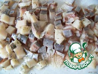 Рыбное филе режем маленькими кусочками. |