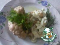 К кальмарам добавила морковь, лук, соль,перец и сметану.на огне подержала еще 3минуты. На гарнир отварила цветную капусту и потушила пару минут в помидоровом соке. Приятного аппетита! |