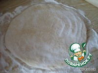 Раскатывает тесто в пласт толщиной 1см. посыпаем сахаром |