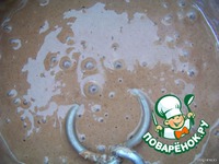 Добавляем кефир, муку, соду, какао, все взбиваем или перемешиваем, получается жидкое, как сметана, тесто. |