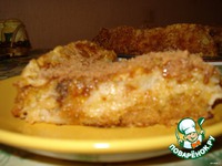 Форму внутри смазать маргарином или сливочным маслом и немного сверху присыпать мукой. На дно формы положить две полных столовых ложки теста и разложить его так, чтоб покрыть дно. |