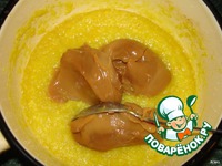 Затем к вареным фруктам добавить сгущенку. |