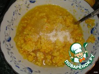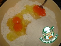 Добавить сахар и яйца, перемешать. |