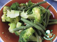 Брокколи разобрать на соцветия; у фасоли обрезать кончики и разрезать ее на 2-3 части. Отварить вместе около 5 минут в кипящей воде. |