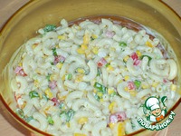Добавляем остуженные рожки, немного перчим, солим, заправляем майонезом и подаем к столу! |