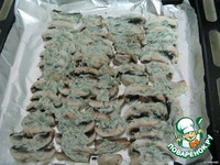 Выложить грудку на грибы и смазать оставшимся соусом. Сверху выложить грибы.Накрыть фольгой и запекать минут 20-30 при температуре 180 градусов. |