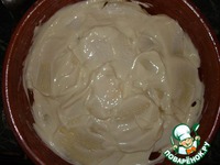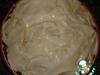 После того, как выложите второй слой картофеля, посолить и смазать его сметаной или майонезом. |