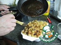12. Приготовить карамель, 50 гр. масла, чайная ложка ванили, 50-70 гр. сахара, корица на кончике ножа, цедра лимона. Добавить ложку сиропа. |