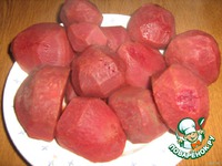 Свеклу чистим и отвариваем в маринаде. Маринад: 1 л воды + 1стак. сахара + 1 стак. уксуса + 1 ст. л. соли. Я брала 2 нормы, так как нужен рассол для нашей капусты. |