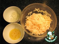 Лук мелко порезать. Яйцо немного взбить с солью (вилкой). Картофель почистить и натереть на крупной терке. Отжать сок. Всё перемешать, добавить измельченный чеснок (я положила гранулированный) |