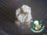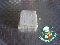 Вторую половинку сырка режем на прямоугольники, затем на квадратики |