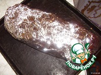 В конце разворачиваем фольгу сверху, даем рулету зарумяниться |