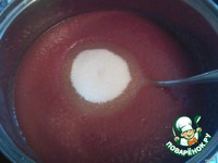 Все протерли, добавили соль, сахар, уксус (его можно взять и меньше 100 грамм), варим еще 15 минут. Можно положить кусочек острого перца, но я не кладу. |
