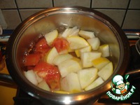 Все овощи нарезать, сложить в кастрюлю, залить горячей водой и варить минут 15-20 до готовности овощей. |