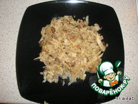 В то время как обжаривается фарш, занимаемся нашими овощами. Капусту нашинковать, обмять с солью. Перчик помыть, очистить, порезать тоненькой соломкой. Изюм замочить в воде. |