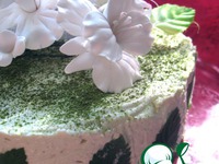 Верх посыпать через ситечко матча-пудрой или украсить как пожелаете. (Можно взять готовое порошковое желе «Киви» - оно по цвету очень хорошо гармонирует – и залить верх желе. |